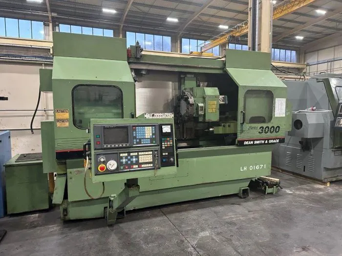 DSG Series 3000 CNC Turning Centre, Fanuc OT Control, 24-42 inch Shaft, 24 inch Swing, Renishaw Optical Machine Interface M14, Swarf conveyor, Transformer, Cabinet of Tooling, Hydraulic Steady, S/N N5145, May 1990, C Axis and driven tools