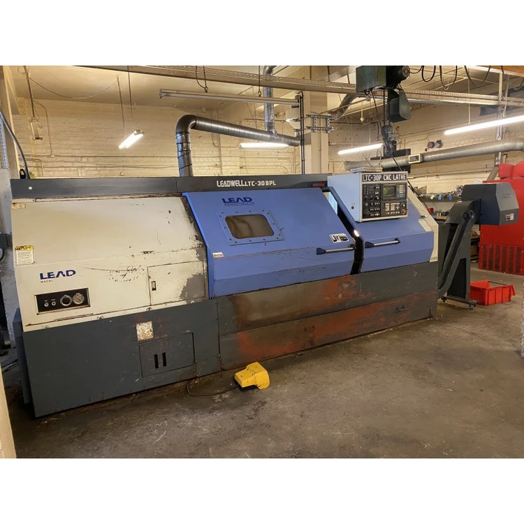 Leadwell LTC 30 BPL, CNC Turning Centre with Fanuc OT Control, fitted with 300mm dia 3 jaw chuck , approx 700mm swing x 1500mm centre distance, spindle bore 80mm, operators foot pedal, Serial Number L2SIH0236, swarf conveyor,