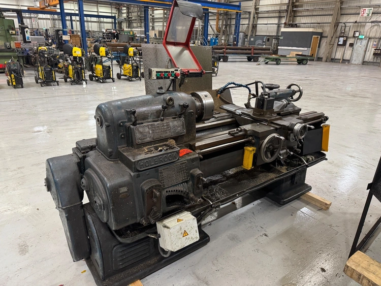 Holbrook Model B Centre Lathe, 3 ft between centres, 10 inch 3 jaw chuck, serial number ind 4454870k indexa, taper turning attachment, leadscrew cover, interlocked chuck guard, coolant, lovo light. , 10 - 525 rpm.